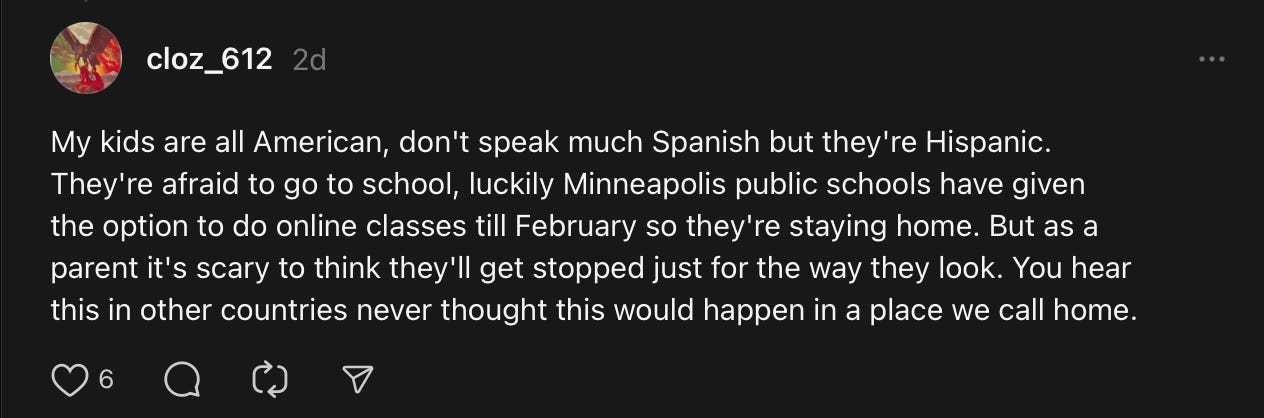 When I was going to school to be a teacher, I used to read EdWeekly for random professional insights. This morning Iβm reading a long article in EdWeekly where teachers explain how they and students are trying to survive the masked/anonymous federal agents that are patrolling the streets of their community in search for humans to snatch up based on the color of their skin.